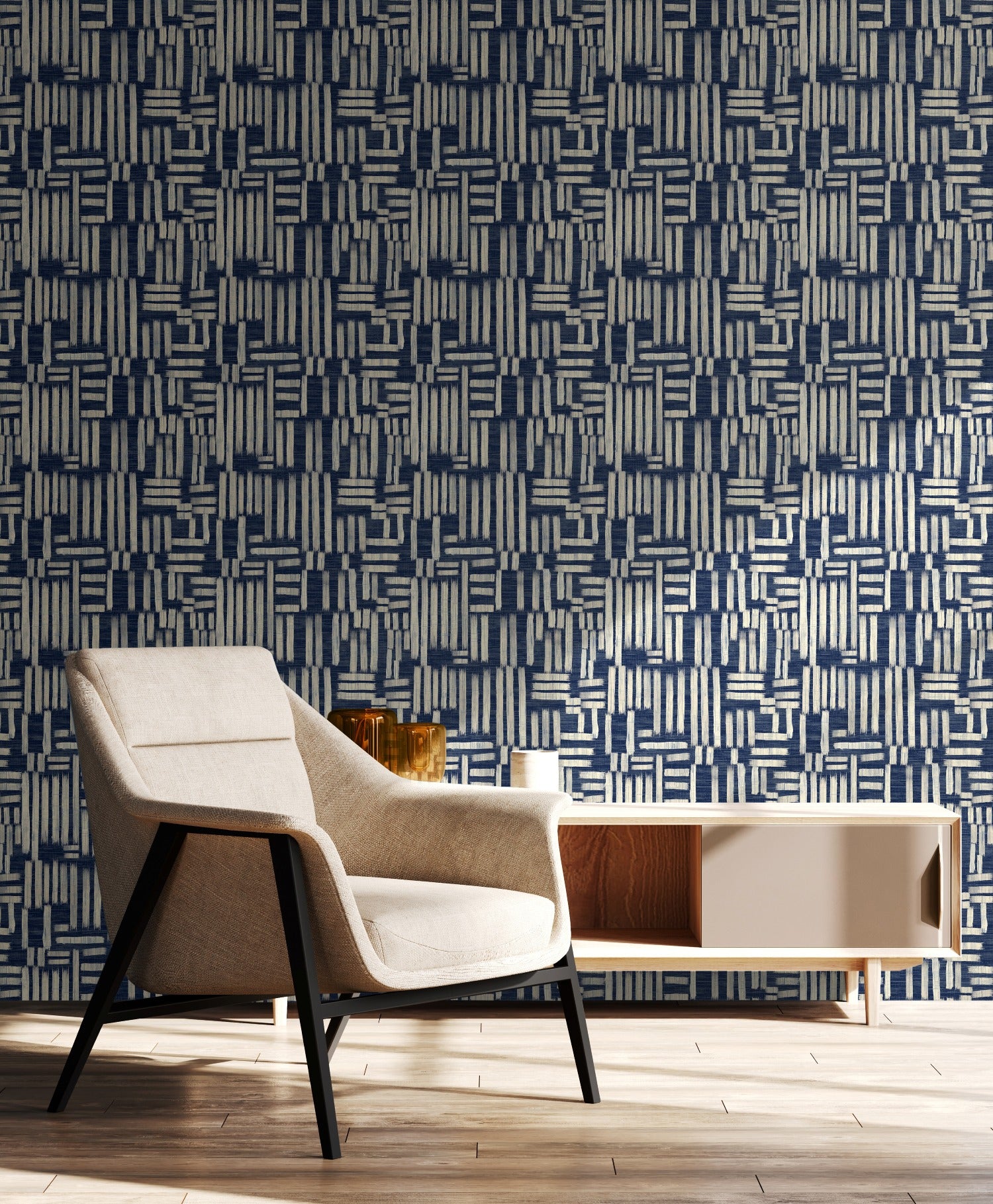 An inspired contemporary design, Interlace captures the art of hand-woven textiles. A dynamic lattice of horizontal and vertical bars forms a complex basket-weave pattern that draws the eye. Elevate your interior with a look that is both structured and artfully abstract.