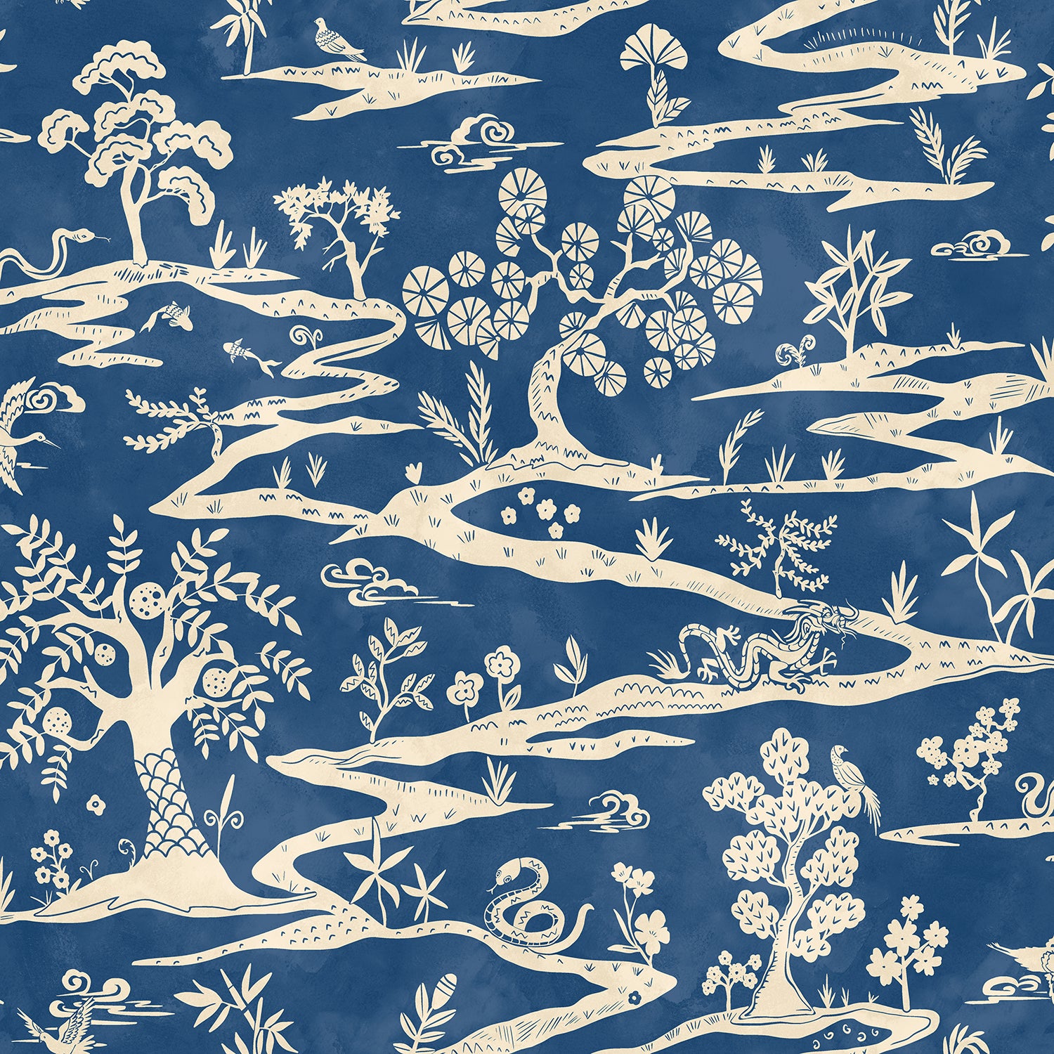 Rendered in just two contrasting tones, Kaiwa has a modern, graphic feel while nodding to the rich visual language of traditional Japanese art. Organic and layered, a conversational landscape unfolds slowly, like walking an enchanting woodland path. "Kaiwa", meaning "conversation" in Japanese, reflects the storytelling nature of the design, ideal for interiors that embrace creativity and meaning.