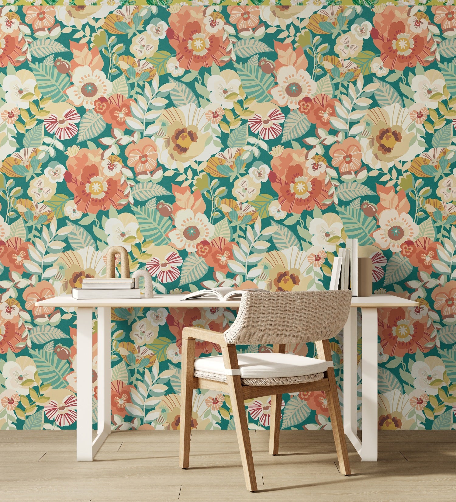 Poppies and Pansies is a bold, graphic celebration of florals, transforming classic blooms into striking contemporary motifs. With simplified stylised shapes, confident outlines, and vibrant contrasts, this design brings a modern artistic edge to any interior. Eye-catching and expressive, it turns your walls into a statement canvas of botanical beauty.