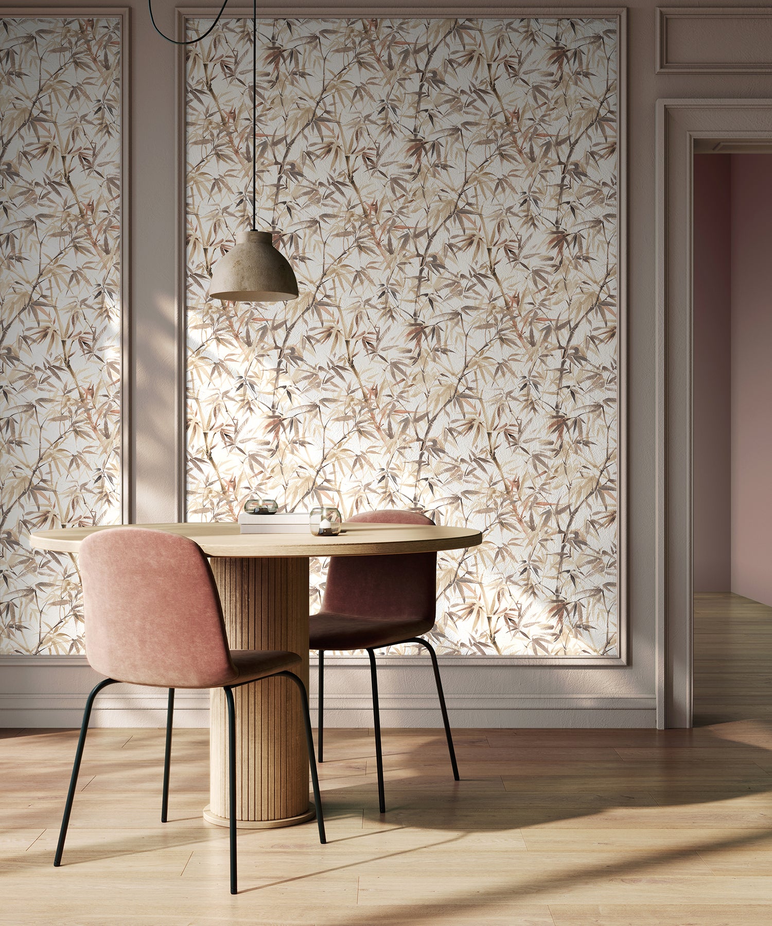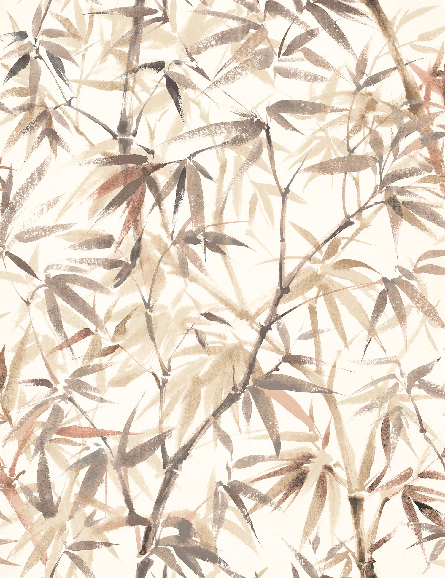 This design features a serene composition of bamboo stems and layered leaves in a soft, watercolour wash. The overlapping branches and foliage evoke a quiet rhythm - organic, unstructured and fluid. With bamboo symbolising strength, flexibility, and resilience within Japanese culture, Shadow Bamboo encourages a peaceful and grounded space.