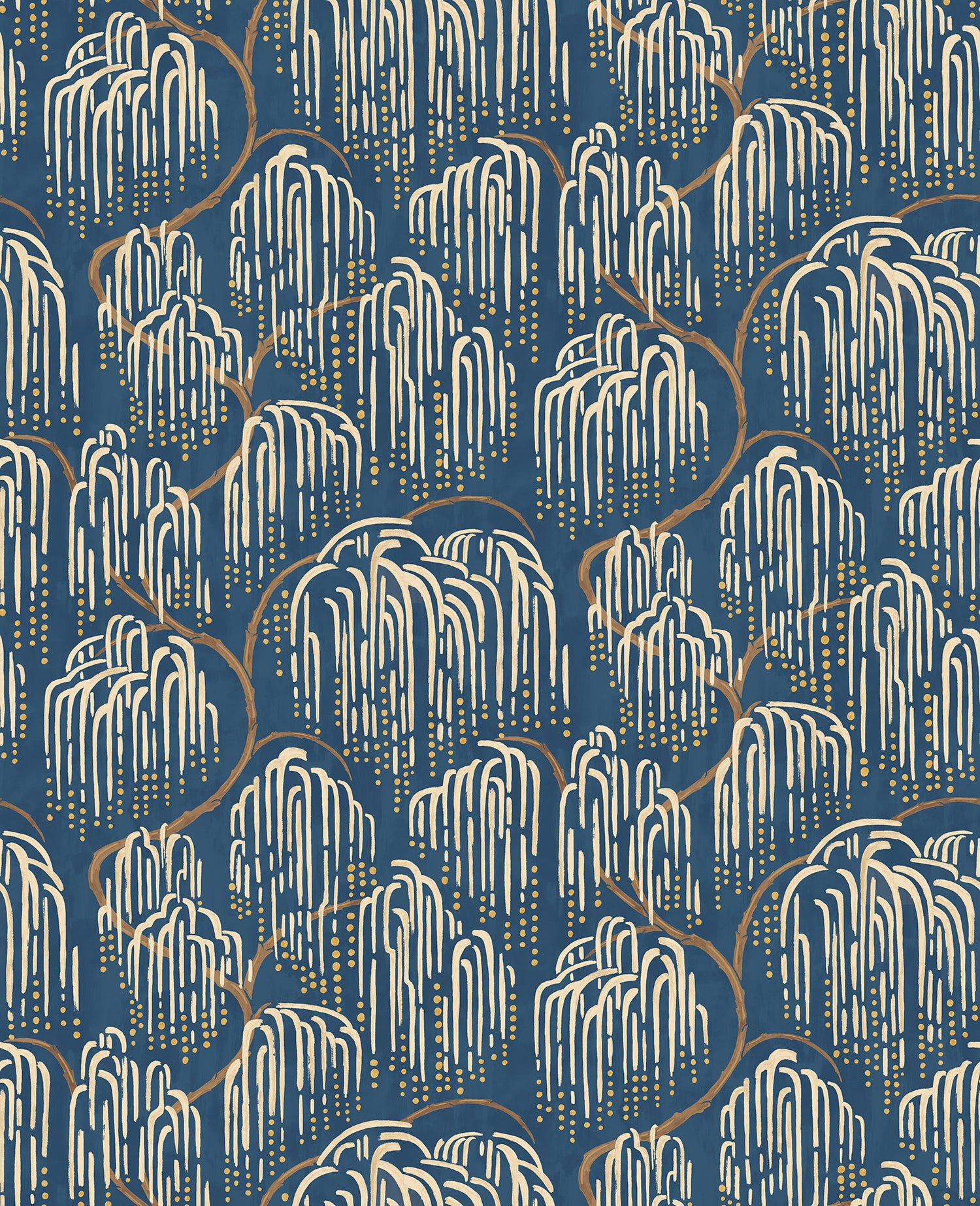 Shizu, meaning stillness offers a contemporary gentle interpretation of the willow tree, its graceful form represented by a series of delicate lines and dotted motifs. Illustrative and minimal, this design captures the true essence of the willow tree, inviting a sense of reflection and tranquility.